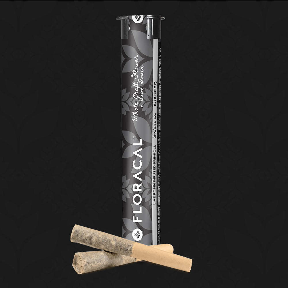 Each 2 pack of 0.5g Pre-Rolls, 1g total per container, averaging between 40-50% THC. Crafted from whole flower of a single pheno and hand-infused with first press, solventlessly-extracted Live Rosin Sand that matches the dominance of the pheno. Constructed in unbleached, rice paper cones for an even burn and maximal taste preservation. Fitted with a Dutch crown tip, you’re ready to light up a harmonious blend of solventless concentrates and sublime flower.